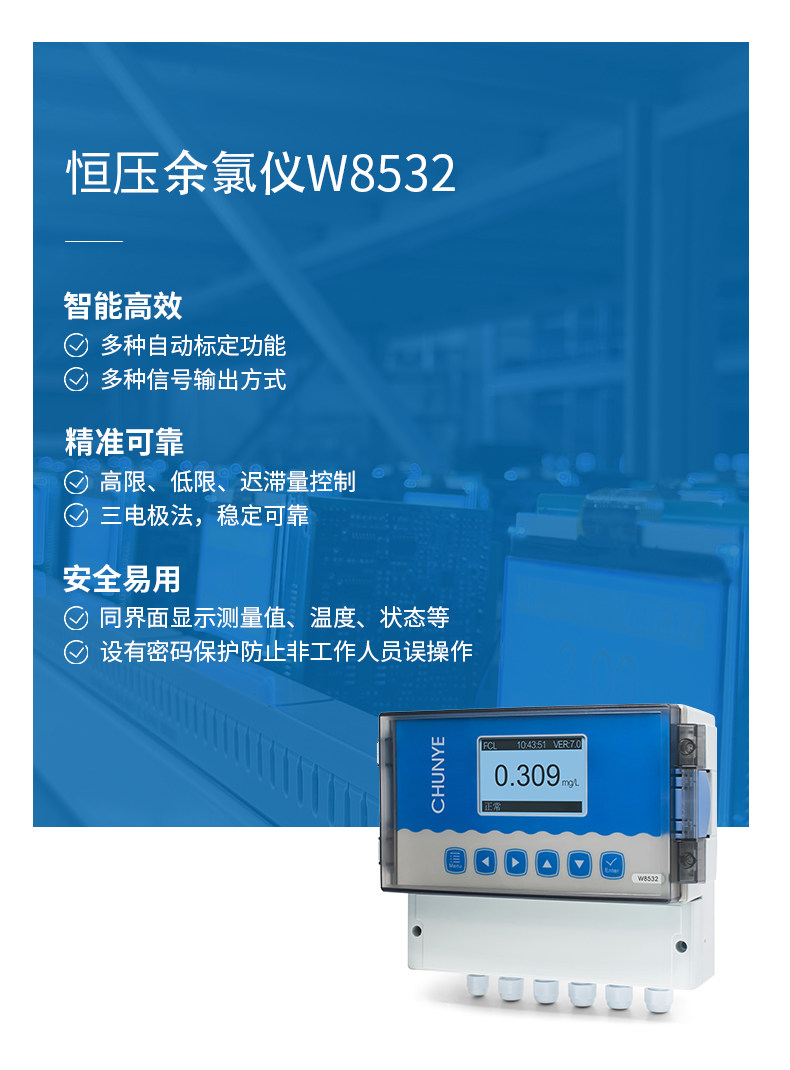 工業在線余氯儀是帶微處理器的水質在線監測控制儀。該儀表廣泛用于飲用水處理廠、飲用水分布網、游泳池、水質處理工程、污水處理、水質消毒等各個行業過程,對水溶液中的余氯值進行連續監測和控制。