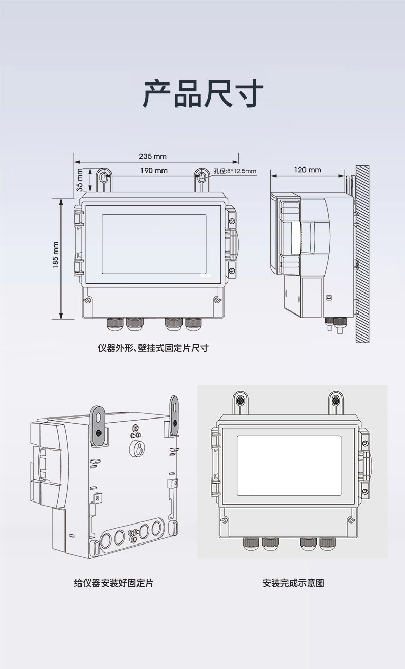 | 外形尺寸 | 215*125*80mm,墻掛式 | 供電電源 | 100~240VAC或9~36VDC |
