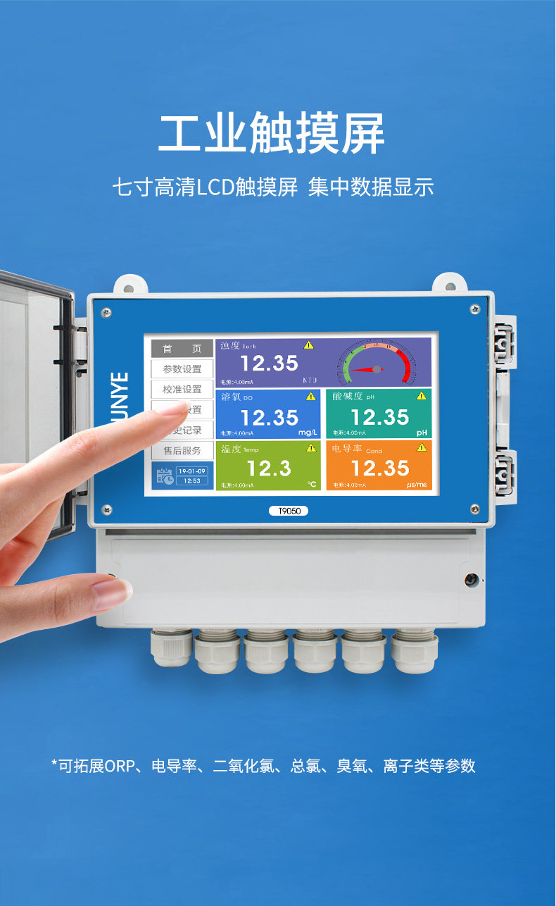 水質多參數在線監測儀基于光學、電化學等測量原理,能夠監測溫度、pH值、電導率、濁度、溶解氧、COD、氨氮、硝氮、葉綠素、藍綠藻等多個水質項目。